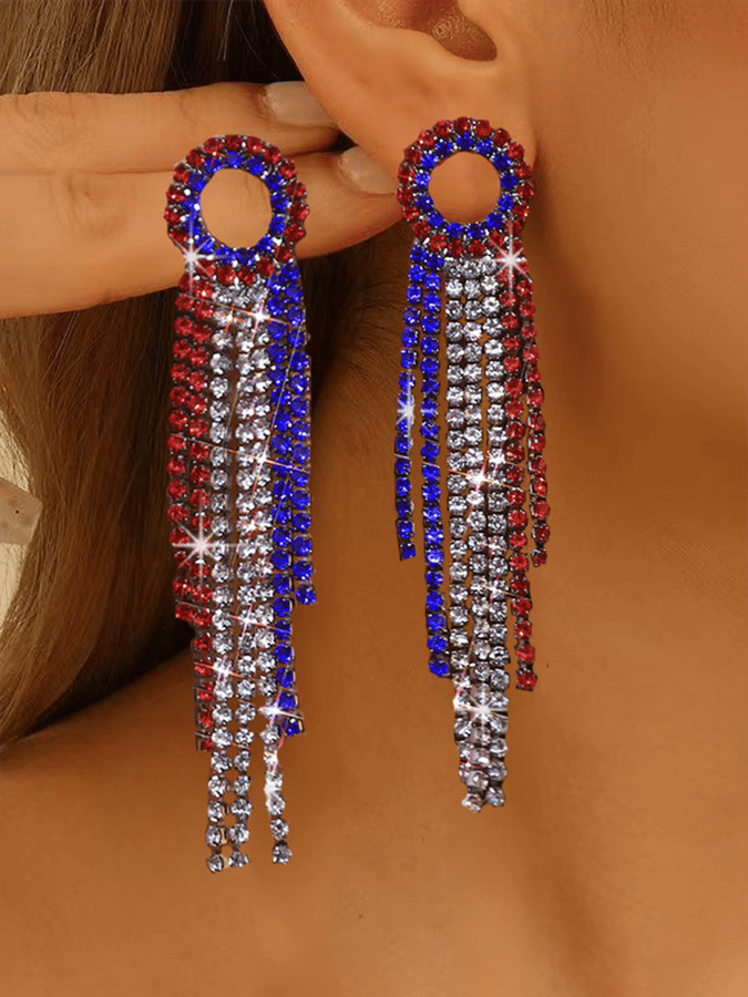 Independence Day Rhinestone Pendant Earrings