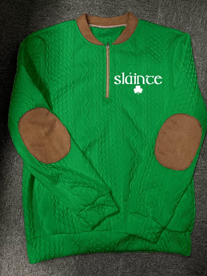 Men's Braided Jacquard St. Patrick's Day Embroidered Zip-Up Sweatshirt
