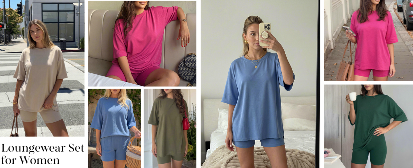Stay effortlessly chic in this 2025 summer lounge set! Oversized shirt + high-waisted biker shorts with pockets - perfect for travel, workouts, or lounging in style. 20 trendy colors!